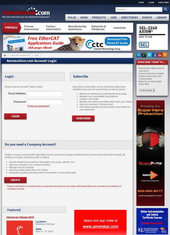 Automation.com has been serving the automation engineering community for 15+ years and has steadily built a following in the millions per month. As a subscribing member you are provided a secure login granting access to website functions that the non-subscriber public does not. There are several revenue generating features included on the website, but advertising is the primary revenue source for this online portal. Automation.com is fully integrated with Google's Double Click for Publishers (DFP) ad serving platform, which allows them to serve custom advertising along side Ad Sense for open inventory. With a staff of 8-10, this portal website publishes mass amounts of content each day and requires a robust management system to streamline the effort.
